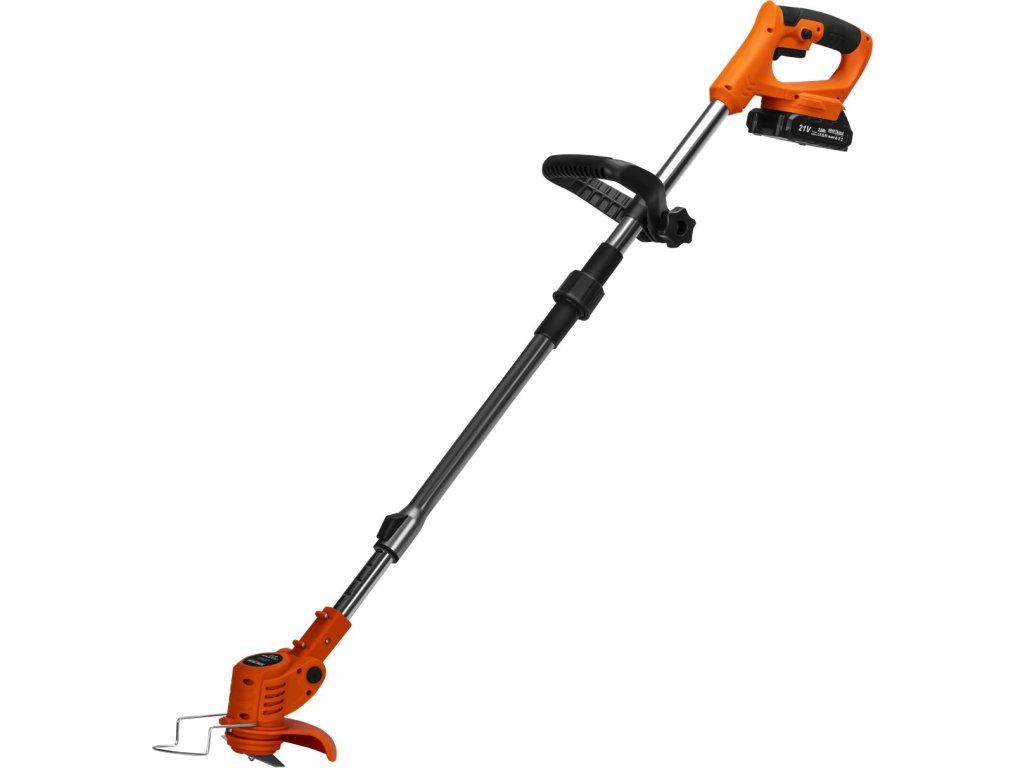 Univerzální aku podkasávač pro přesné sečení trávy a plevelů na těžko přístupných místech. Napájení 21 V bez kabelů, 2 baterie 2,0 Ah a rychlá nabíječka pro delší práci bez přerušení. Teleskopická regulace délky, nastavení úhlu hlavy a vodicí kolečka zvyšují komfort i přesnost. Výměnné nástroje (struna, plastové/kovové nože, kotouč) rozšiřují možnosti použití. Ochranný kryt zvyšuje bezpečnost při práci u zdí a obrub.