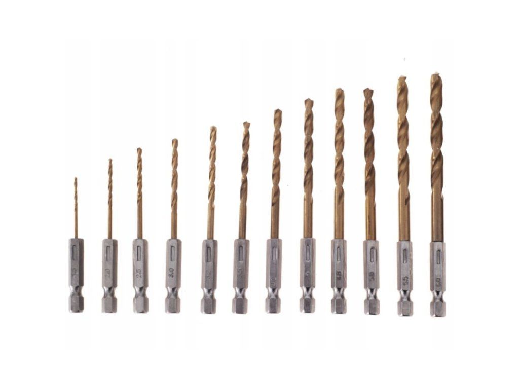 - 13 vrtáků ve velikostech: 1,5 / 2 / 2,5 / 3 / 3,2 / 3,5 / 4 4,5 / 4,8 / 5 / 5,5 / 6 / 6,5 mm