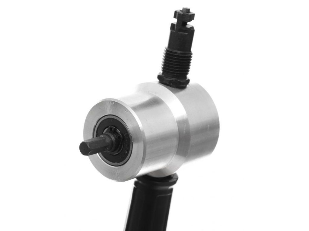 Toto příslušenství na vrtačku je určené k řezání kovových plechů. Jednoduchá konstrukce a snadná obsluha umožňují rychlé a přesné řezání plechu. Přístroj funguje jako rozpínací kleště, kde speciální ostří poháněné otáčkami vrtáku provádí posunutí dopředu a zpět a rozřezává plech. Tělo přístroje je vyrobeno z hliníku, mechanismus z kalené oceli.