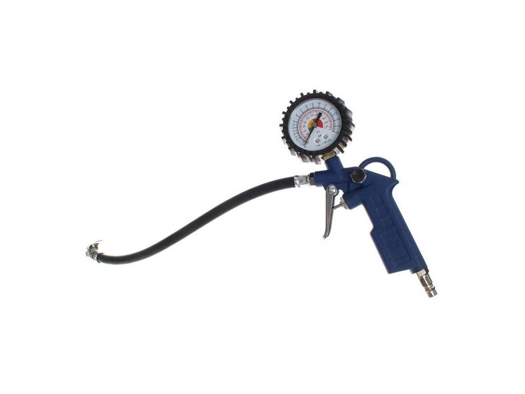 - Nafukovací pistole s manometrem je ideální na nafukování a kontrolu tlaku v pneumatikách. Má gumové pouzdro na hodiny. Je vybavena odvzdušňovacím ventilem.