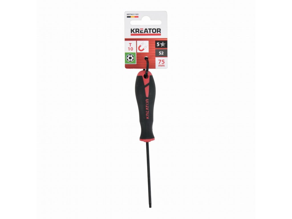 Tento TORX šroubovák KRTH21105 z naší řady Kreator má 75 mm dlouhou stopku a je vyroben z vysoce kvalitní oceli S2.Magnetický hrot T10 urychluje proces šroubování.