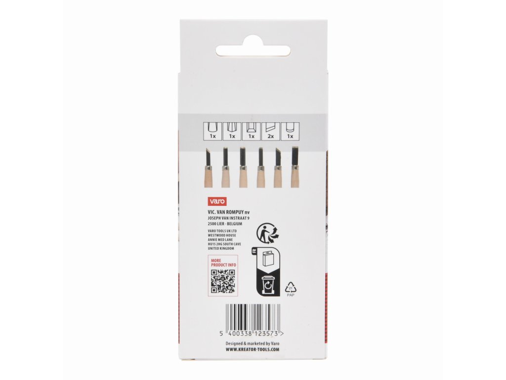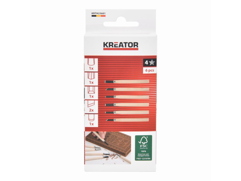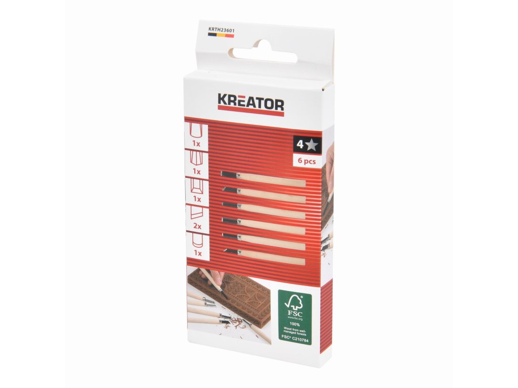Tato sada KRTH23601 od Kreator obsahuje 6ks miniaturních dlát na dřevo s dřevěnou rukojetí, která splňují certifikaci FSC(R) C210784.Dláta jsou ideální pro přesnou a detailní práci se dřevem.