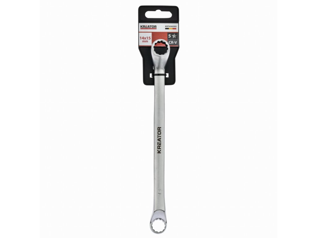 Tento dvojitý očkový klíč KRTH30305 z naší řady Kreator má délku 175 mm a je vyroben z vysoce kvalitní chrom-vanadiového slitiny.Osazené kroužky zajišťují efektivnější přenos vyvíjené síly.
