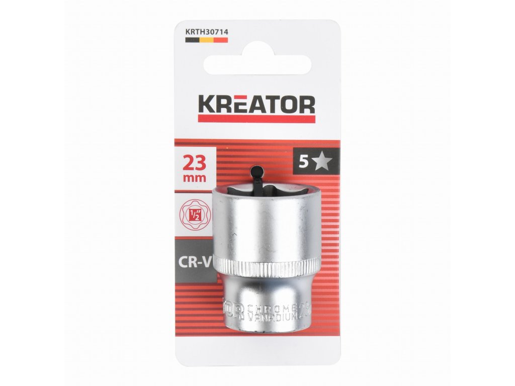 Tento nástrčný klíč KRTH30714 od Kreator o rozměru 23mm použijte k povolování nebo utahování matic a šroubů.Nástrčný klíč je vyroben z robustní chrom-vanadiové slitiny a má upínací velikost 1/2".