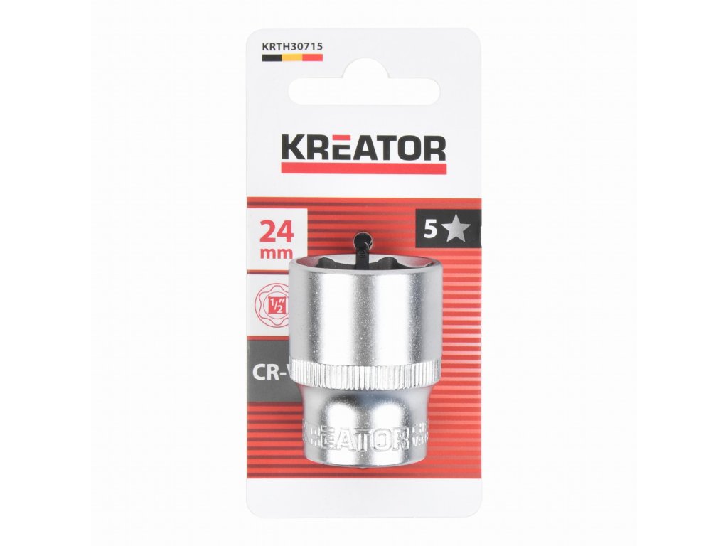 Tento nástrčný klíč KRTH30715 od Kreator o rozměru 24mm použijte k povolování nebo utahování matic a šroubů.Nástrčný klíč je vyroben z robustní chrom-vanadiové slitiny a má upínací velikost 1/2".