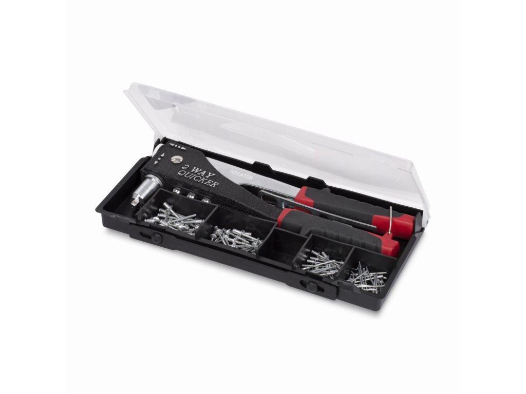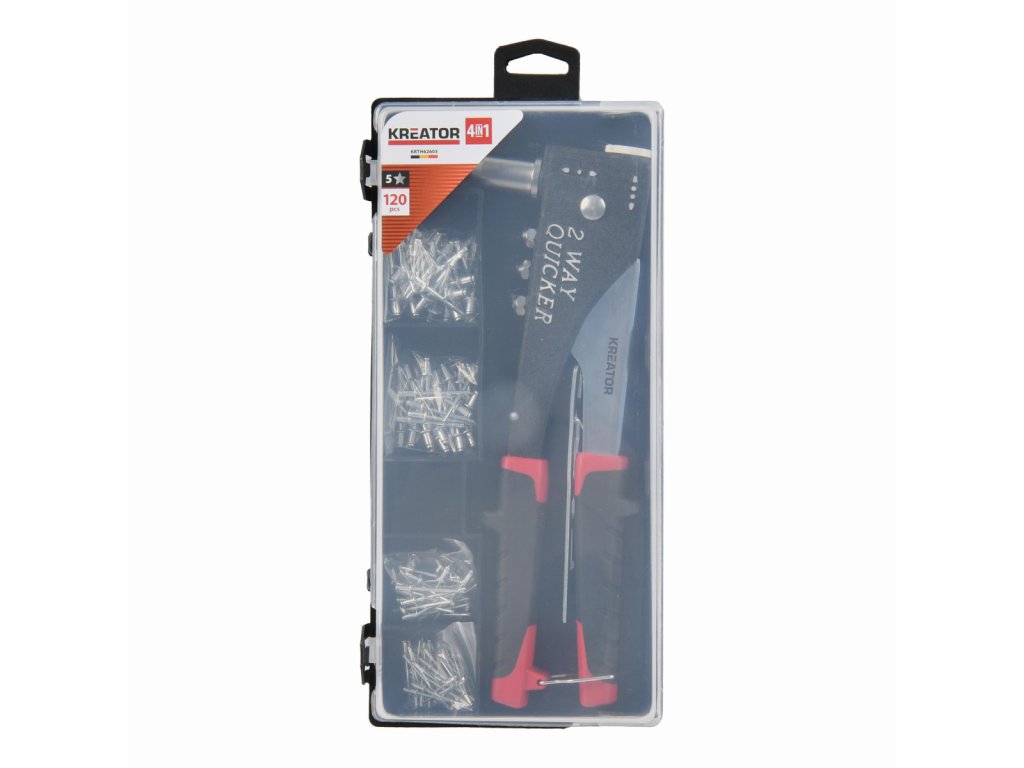 Tyto oboustranné nýtovací kleště KRTH62603 z naší řady Kreator jsou profesionální kvality.Používejte je k rychlému spojení kovových, hliníkových nebo plastových předmětů bez šroubů.