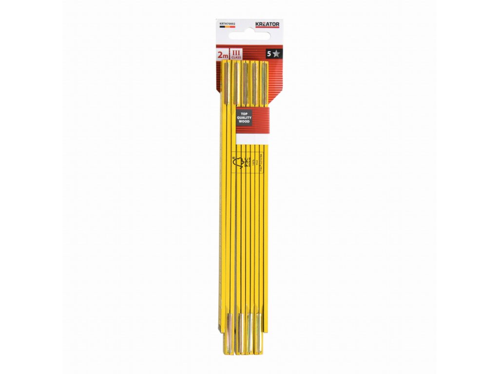 Tento skládací metr KRTH70002 z naší řady Kreator je 2 m dlouhý a vyrobený z kvalitního dřeva s certifikací FSC(R).Barevné značení na stupnici usnadňuje odečítání vašich rozměrů.