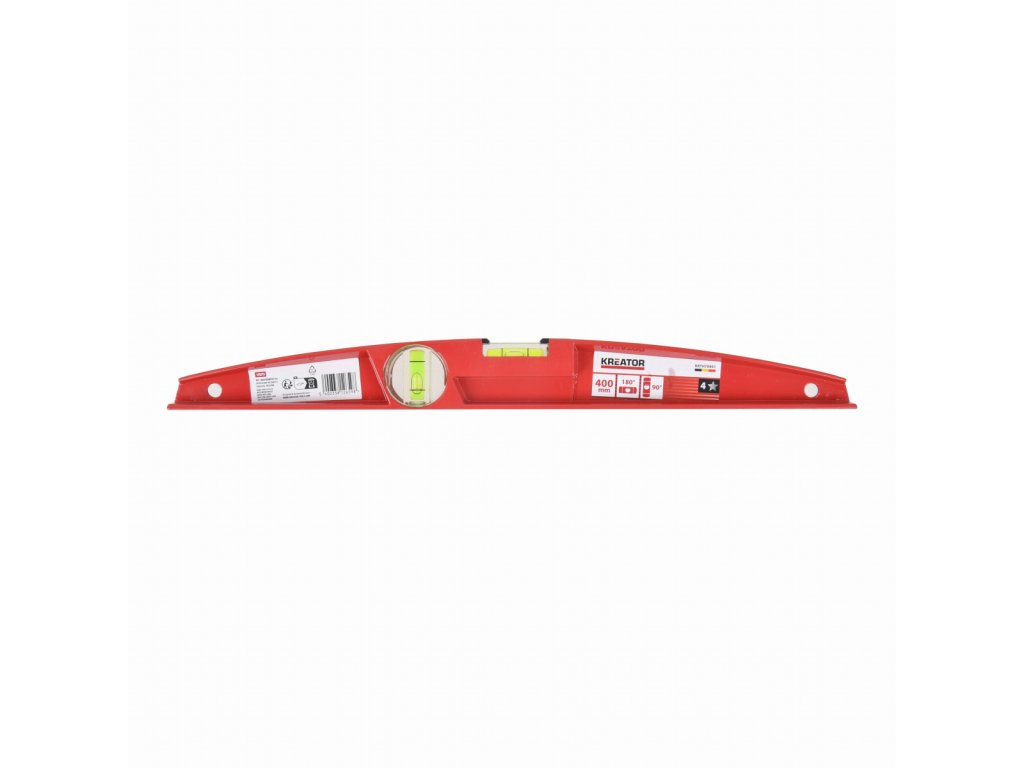Tato robustní, ale lehká vodováha KRTH70901 z naší řady Kreator o délce 40 cm může být použita horizontálně i vertikálně.Odolný hliníkový rám má ohnutý profil pro pevný úchop.