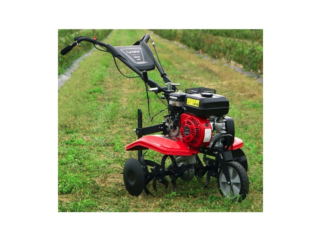 - Benzínový kultivátor je vybavený odolným motorem, který usnadňuje práci na zahradě.