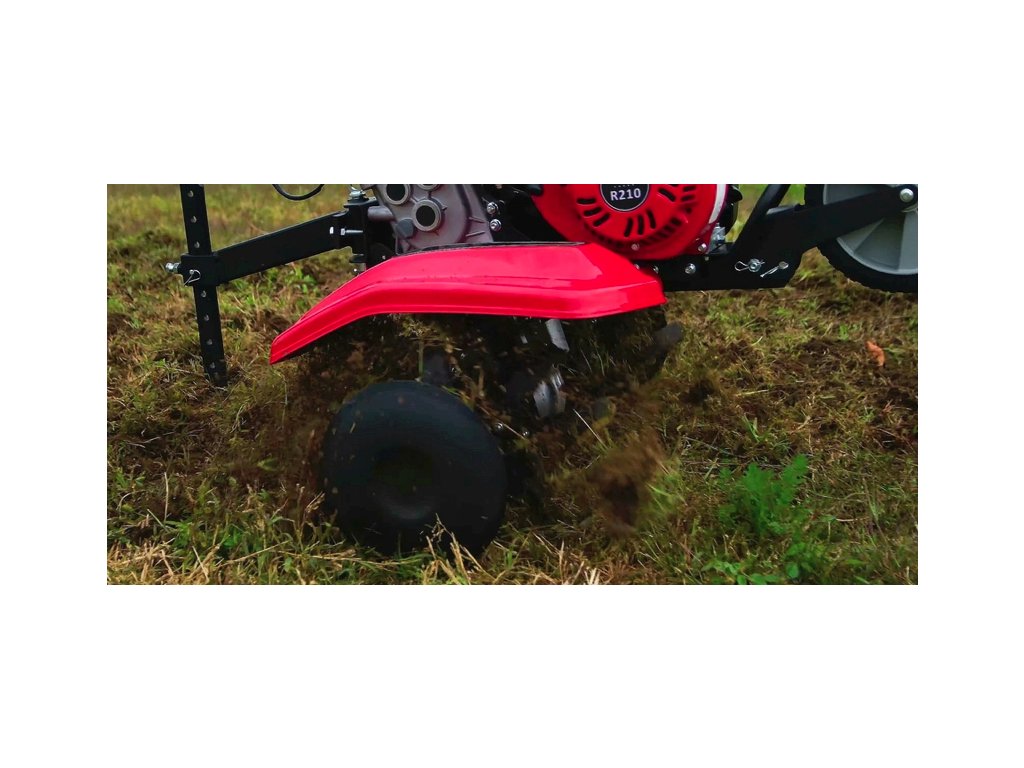 Pomocí přepravních kolečků, která jsou součástí dodávky, je přesun našeho kypřiče půdy snadný a bez námahy. Pracovní šířka kypřiče je 850 mm, ale max. pracovní hloubka je 360 mm.