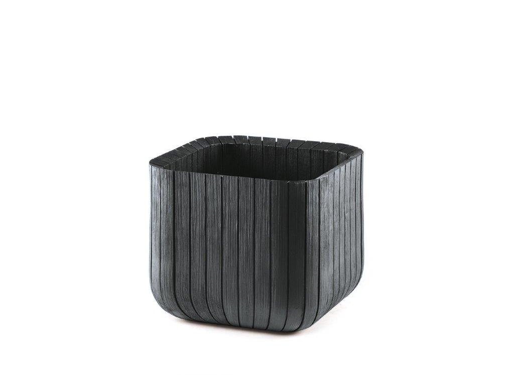 Květináč Keter Cube Planter M v elegantní antracitové barvě zaujme věrnou imitací přírodního dřeva a odolnou konstrukcí z lisovaného plastu. Díky objemu 50,5 litru se hodí pro pěstování větších rostlin na zahradě, terase i balkonu.