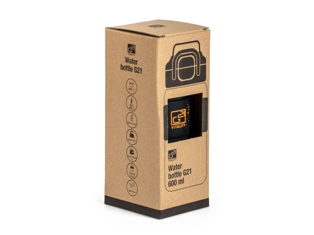 Láhev na vodu je vyrobena z tritanu (zdravotně nezávadný materiál bez BPA), který neovlivňuje chuť nápojů a zároveň je velmi odolný. Díky tomu máte jistotu, že láhev na pití G21 zůstane dlouho jako nová a nepopraská ani při náročnějším používání. Materiál se také snadno udržuje – láhev stačí umýt pod tekoucí vodou a můžete ji znovu použít.