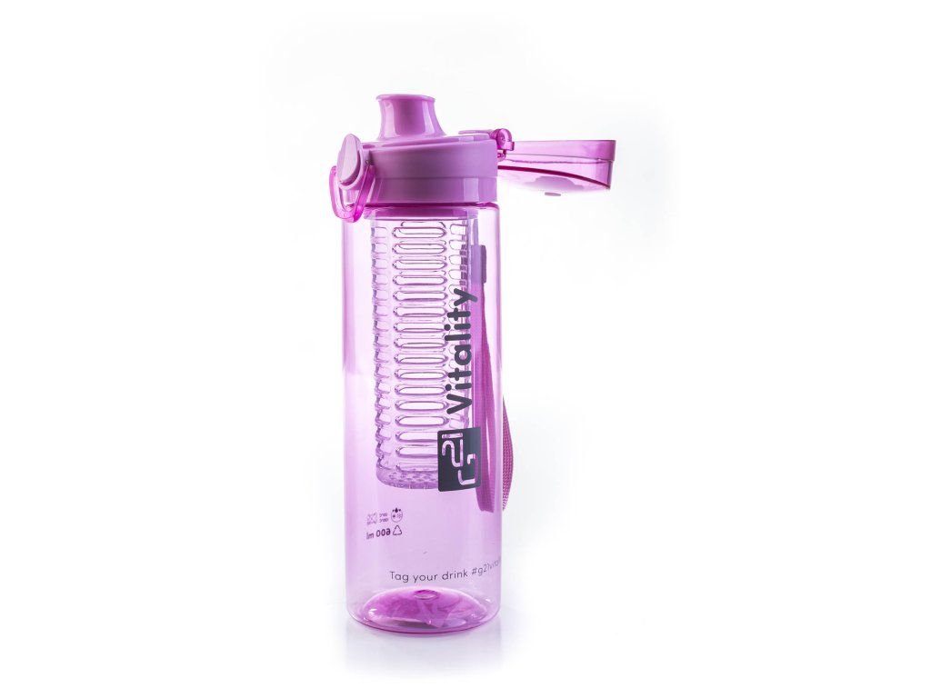 Láhev G21 na smoothie/juice ve fialové barvě je vyrobena z odolného a nezávadného tritanu. Má objem 600 ml a je to praktický parťák nejen na doma, ale i do přírody nebo na sport. Navíc obsahuje plastové vkládací sítko na louhování bylinek, kousků ovoce nebo čajů.