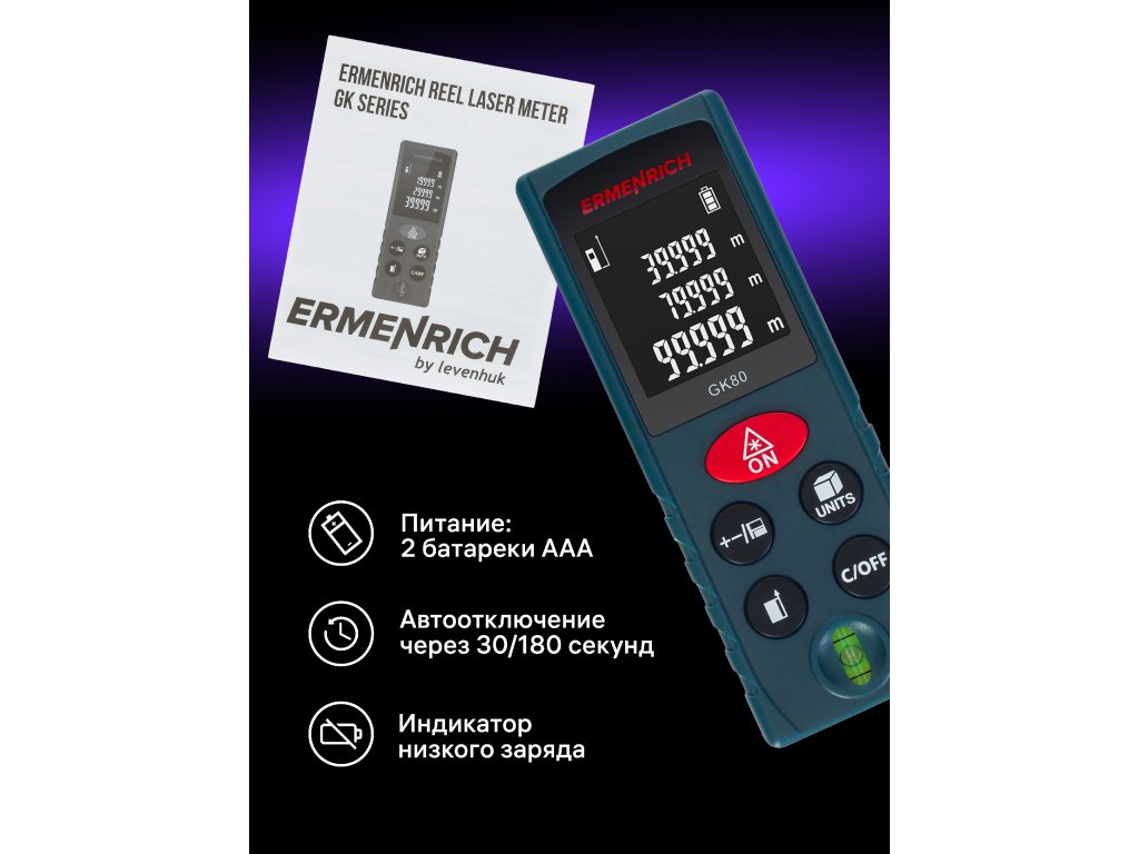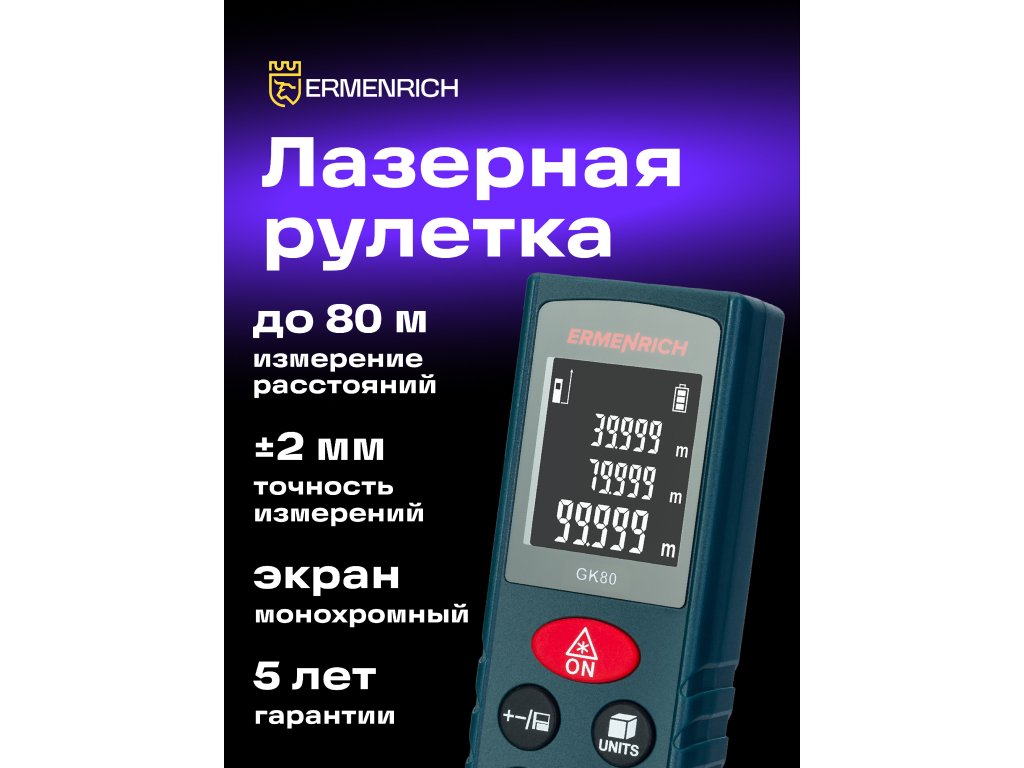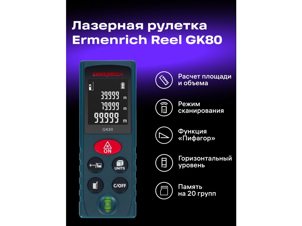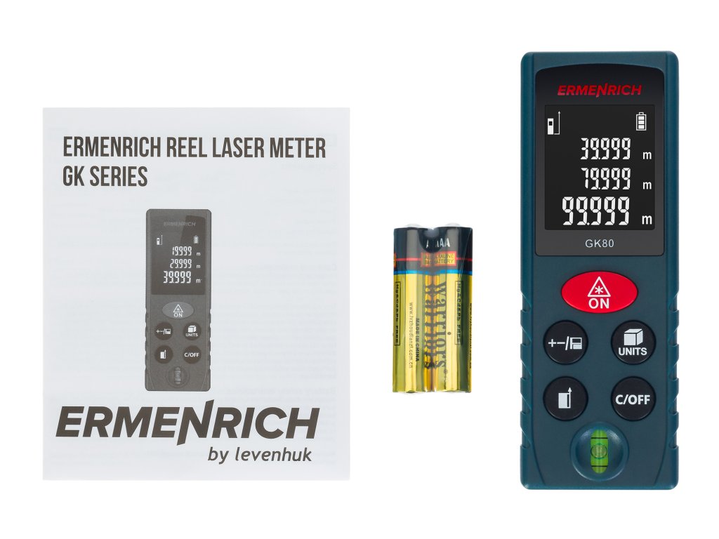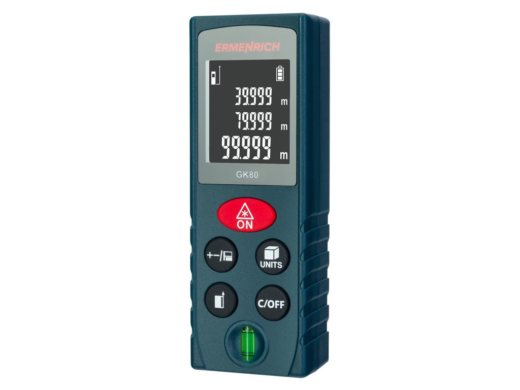 Laserový měřič Ermenrich Reel PLUS GK80 umožňuje přesná měření vzdáleností do 80 metrů a určovat objem a plochu, což z něj činí užitečný nástroj při opravách a na stavbách. Měřič je také vybaven funkcí Pythagorovy věty, která je nepostradatelná, když potřebujete měřit v obtížných podmínkách. Funkce Pythagorovy věty vypočítá pomocí dvojice mezilehlých měření vzdálenost k bodu, který nelze přímo zasáhnout laserem.