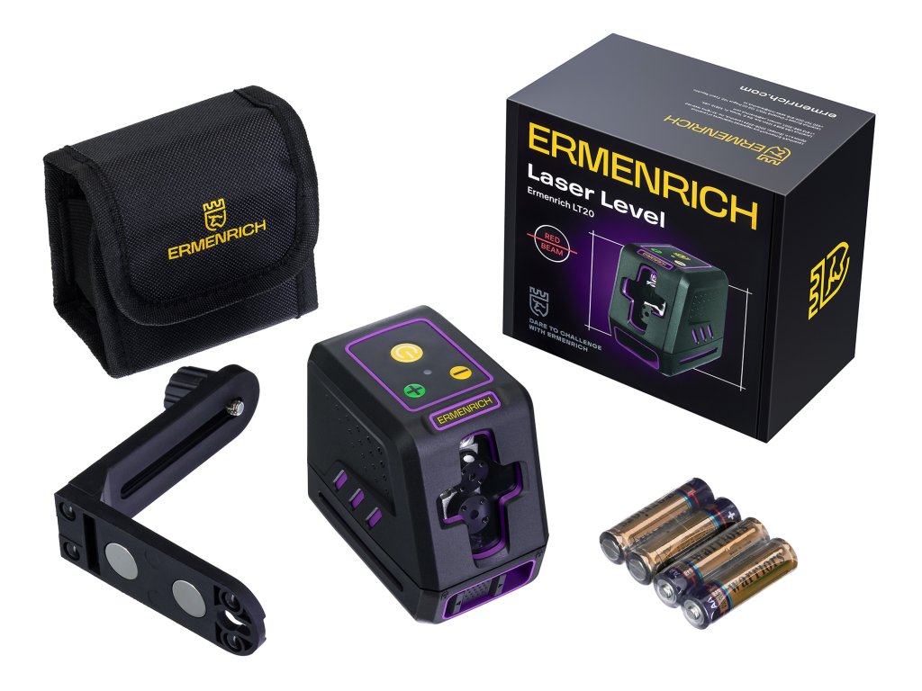 Seznamte se s laserovým nivelačním přístrojem Ermenrich BASE LT20 – univerzální nástroj pro stavební, renovační a dokončovací práce. Je vybaven červenými laserovými LED diodami, které generují dvě křížové čáry. Vodováha může být až 15 m od povrchu, na který jsou promítány laserové paprsky. Horizontální a vertikální rozptyl – 130°. Kompenzátor vyrovná linie laserového paprsku. Vzhledem k nízké chybě měření vám pomůže co nejpřesněji vyznačit prostor.