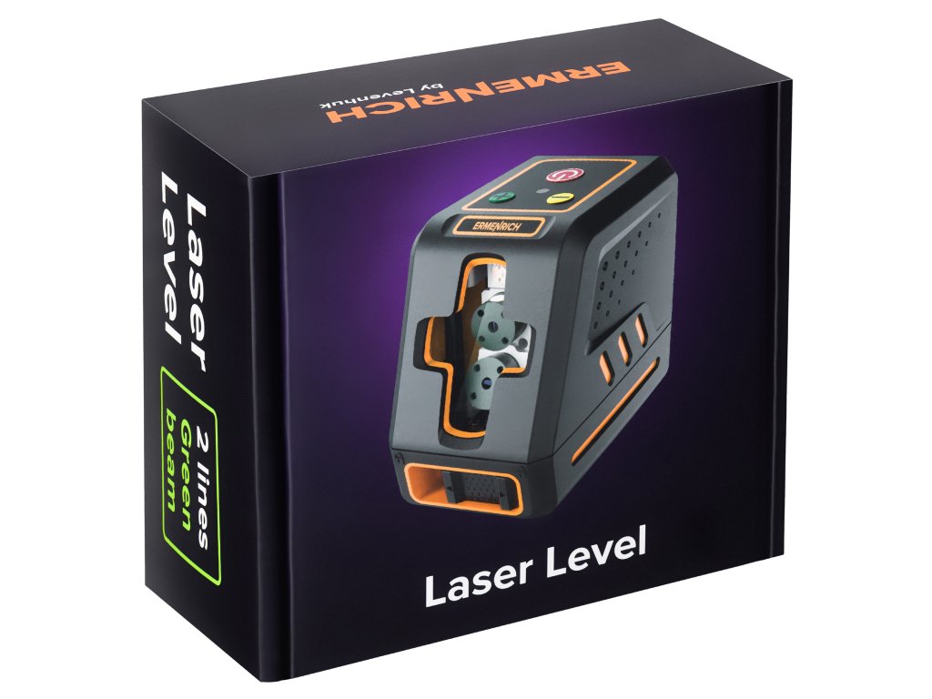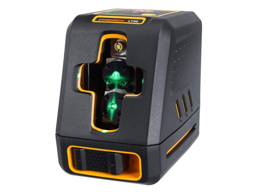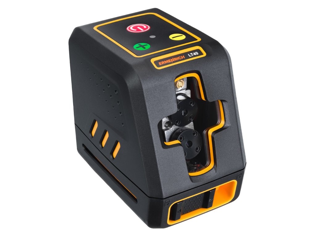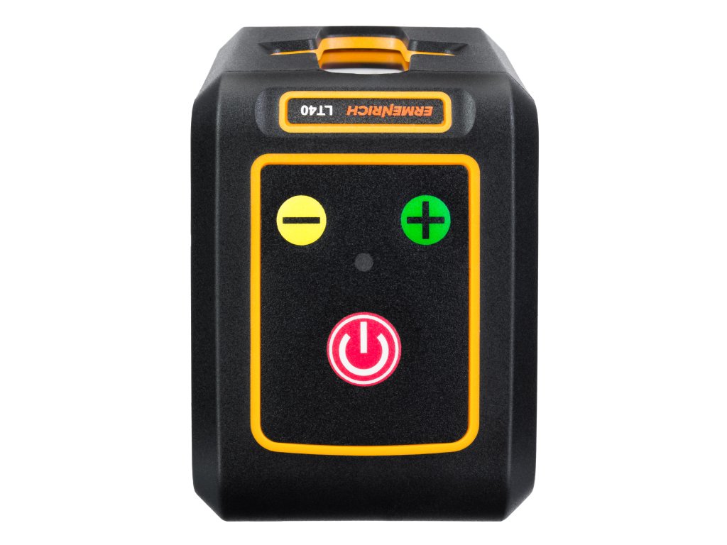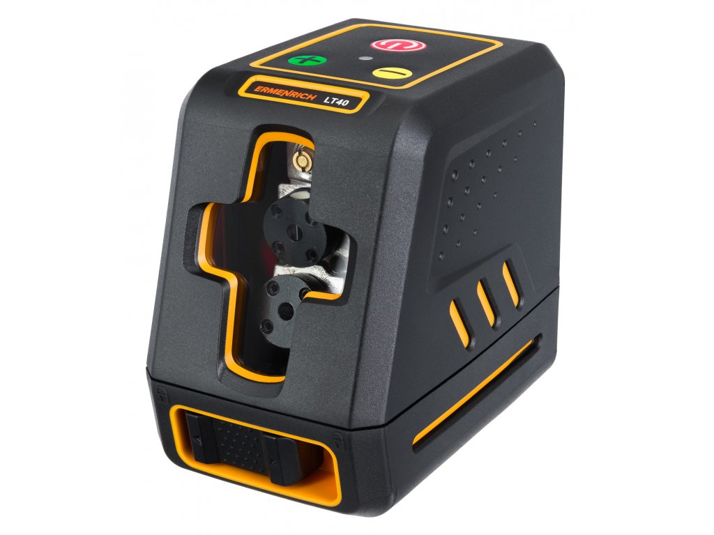 Ermenrich BASE LT40 je laserový nivelační přístroj, který generuje dvě křížové čáry pomocí zelených laserových LED diod. Zařízení je ideální pro stavební, interiérové a renovační práce. Horizontální a vertikální roviny s rozptylem 130°. Napájení standardními bateriemi, k dispozici je 10 úrovní jasu. I při maximálním jasu je výdrž baterie až 10 hodin na jednu sadu baterií, takže je nemusíte během pracovní směny vyměňovat.