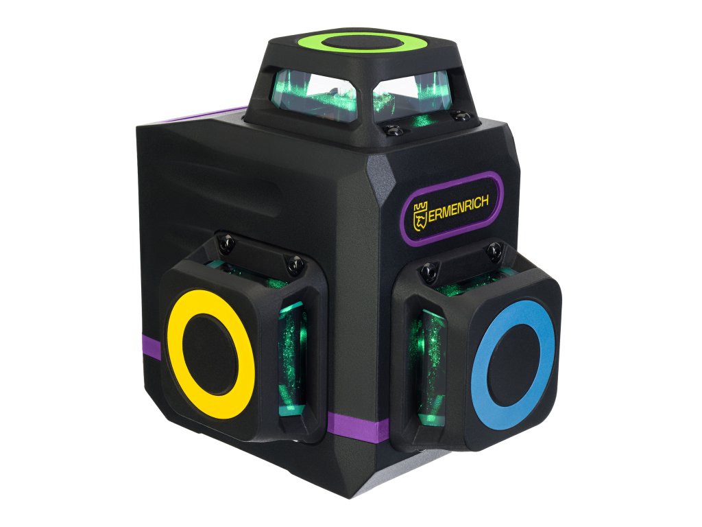 Vysoce zářivé laserové LED diody produkují 12 zelených čar ve 3D, laser pokrývá 360° horizontálně i vertikálně. Velká pracovní vzdálenost umožňuje efektivní vytyčení i velkých ploch. Zařízení lze ovládat na dálku pomocí dálkového ovladače.