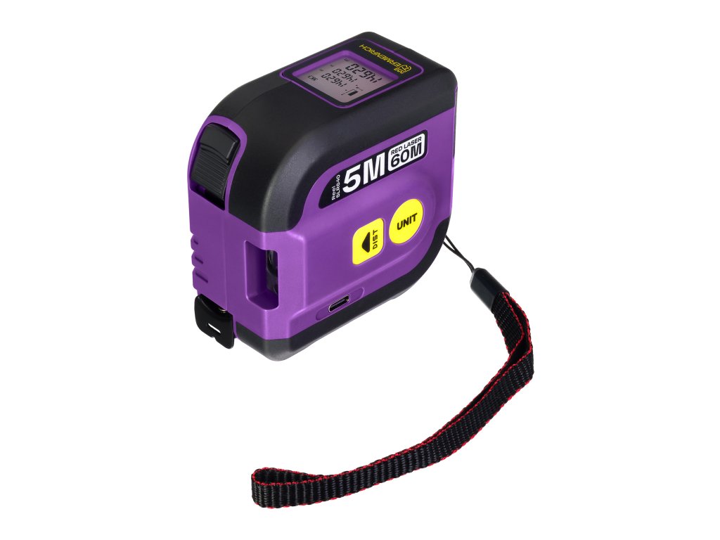 - 2 v 1: laserový měřič s rozsahem měření 60 metrů a 5metrový svinovací metr