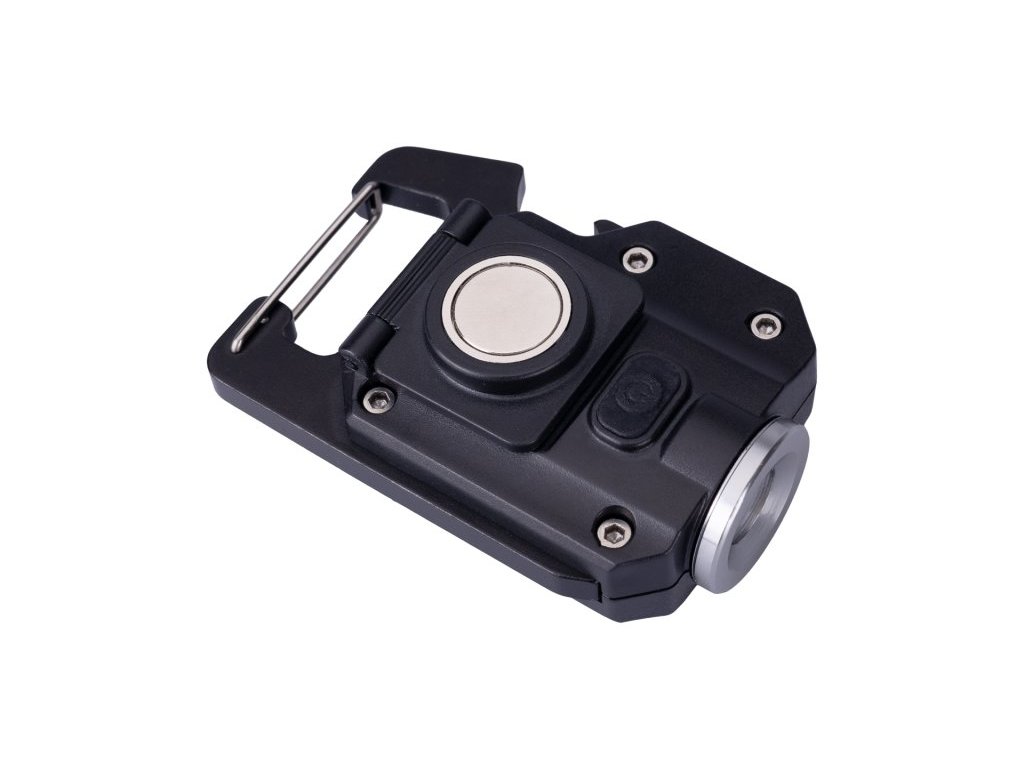 - svítilna ukrývá v malem těle velké možnosti - karabina, silný magnet, výklopný stojánek, závit 1/4" pro montáž na stativ, otvírák na lahve