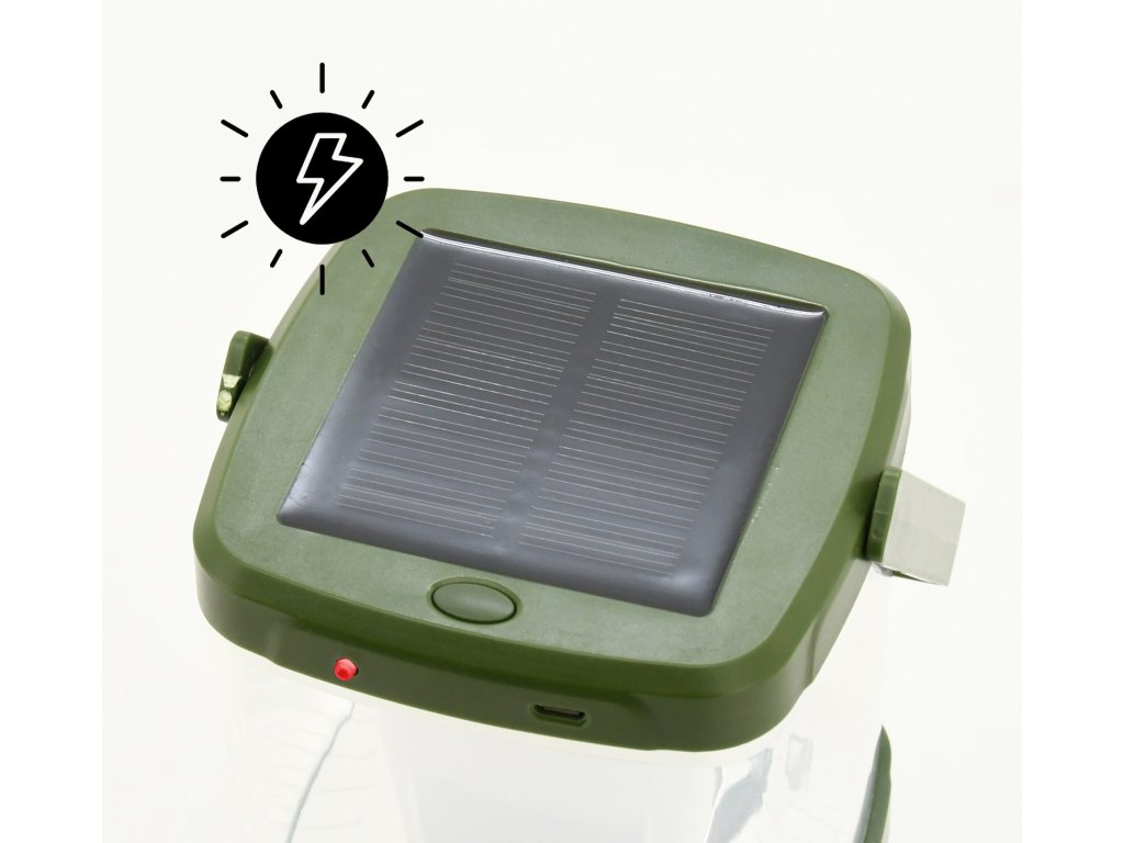 - Solární panel pro dobíjení na přímém světle