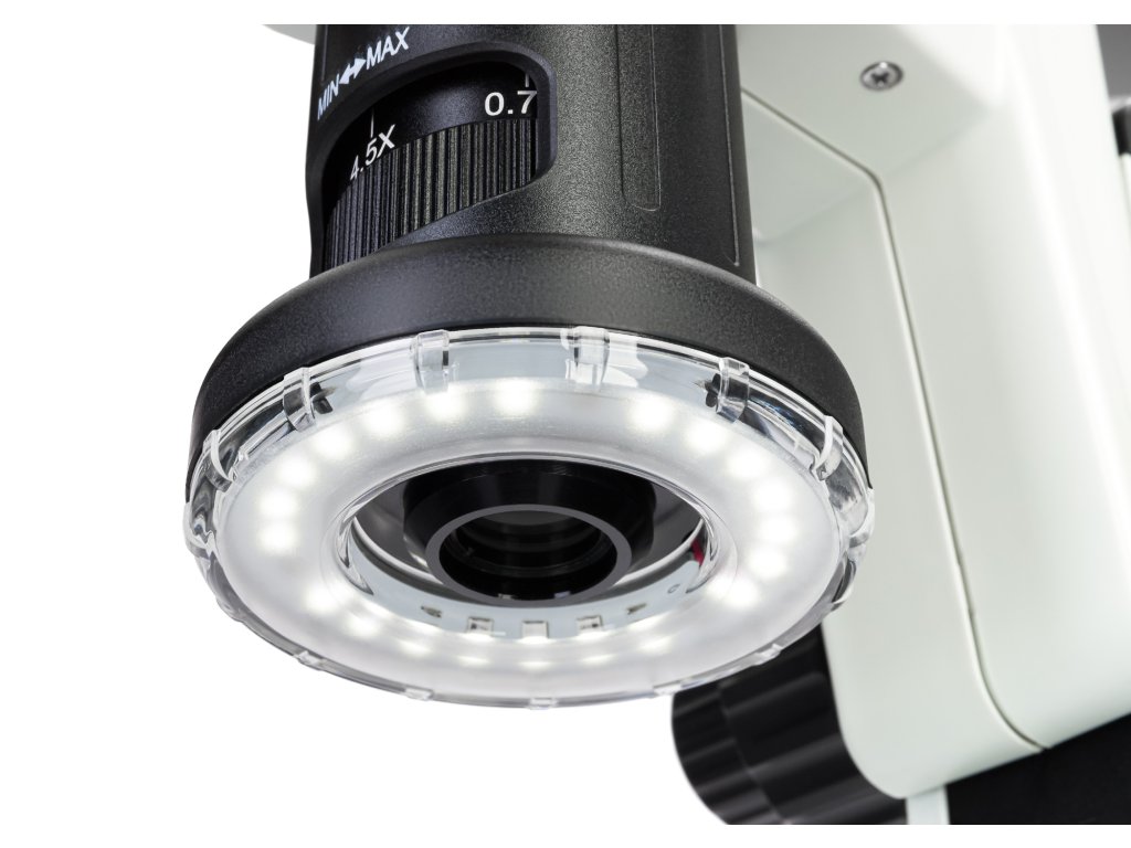 - Bright ring illumination with 21 LEDs for incident light without shadows