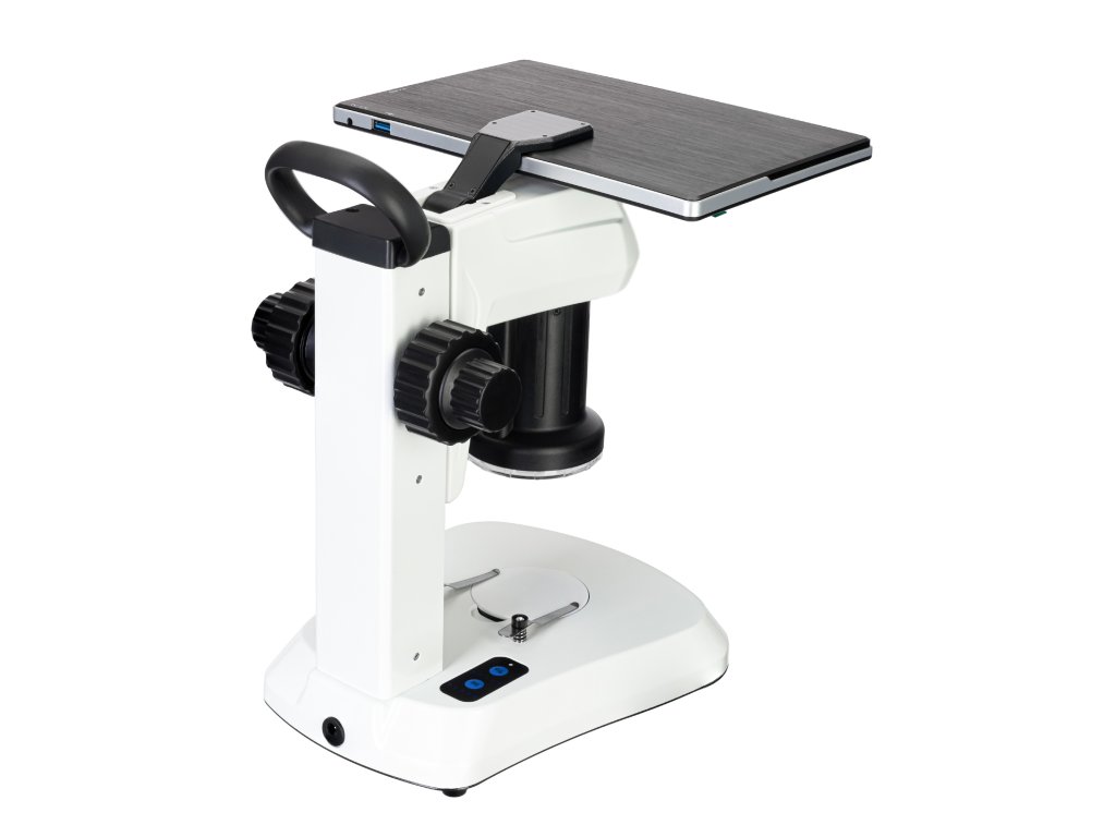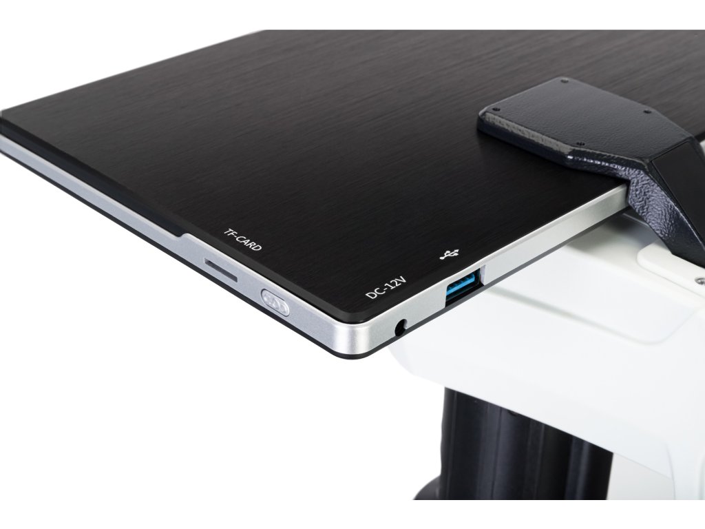 Analyses become simple and efficient with the workshop microscope, even for inexperienced users. Photos and videos can be simply saved to an SD card. With an USB-mouse controlling the slides can be done via on-screen menu. No Computer is required to use the digital microscope.
