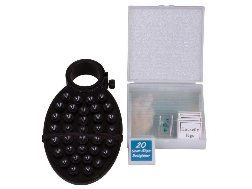 - Box with preparations, empty slides and cover glasses