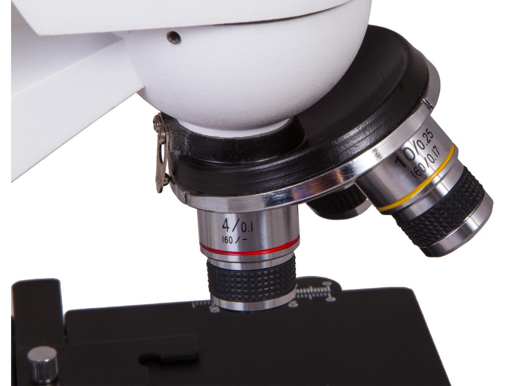 Three magnifications (40x, 100x, 400x) deliver good resolution to see small details. There is no need to work with immersion oil. The achromatic DIN objectives deliver sharp images with nice detail. The 40x objective is spring loaded to minimize the risk of damage to specimen or objective.