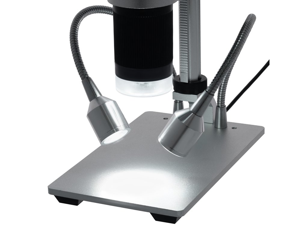 Nejedná se o běžný systém osvětlení. V objektivu se nachází několik LED diod – to je pro pozorování odraženým světlem s osvětlením shora standardní. Je také vybaven dvěma bodovými LED světly na flexibilních držácích, které lze ohýbat do různých úhlů pro přesnější osvětlení pozorované oblasti. Jas osvětlení lze regulovat.