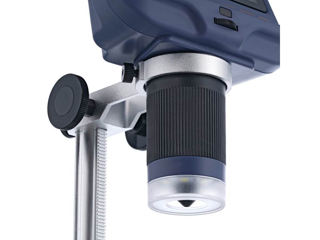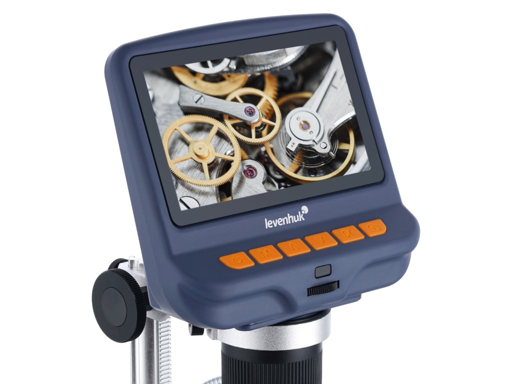 Namísto klasických okulárů je vybaven 4,3" barevnou LCD obrazovkou. Zachycuje obraz pozorovaný objektivem a zobrazuje ho v reálném čase. V případě potřeby lze obraz zobrazit na obrazovce počítače. K tomu je nutné mikroskop připojit k počítači pomocí přiloženého kabelu USB. Ke studování vzorků lze použít optické nebo digitální zvětšení. Celkový rozsah zvětšení se pohybuje od 3násobku do 220násobku. Mikroskop také umožňuje zaznamenávat snímky ve vysokém rozlišení a videa ve kvalitě Full HD (vyžaduje paměťovou kartu, která není součástí balení).