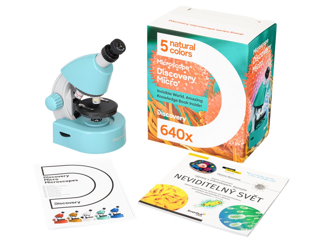 Levenhuk Discovery Micro je biologický mikroskop základní úrovně, který umožňuje pozorovat průhledné vzorky. Mohou to být hotové preparáty, mikrosvět v kapce vody nebo vlastní preparáty. Mikroskop je malý a lehký, a je tak snadno přenosný. Proto jej můžete používat nejen doma, ale můžete si jej vzít s sebou také na výlet nebo na venkov do přírody.