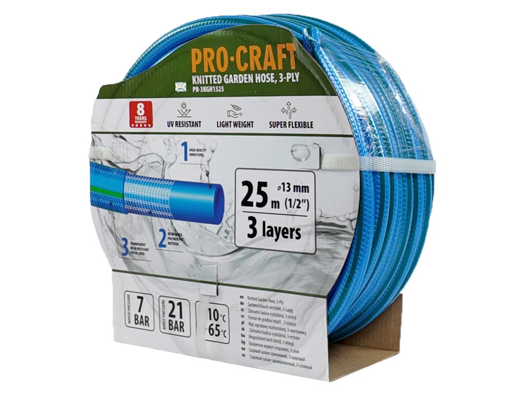Modrá zahradní hadice Procraft PR-3KGH1325 3 vrstvy, 1/2" 25m