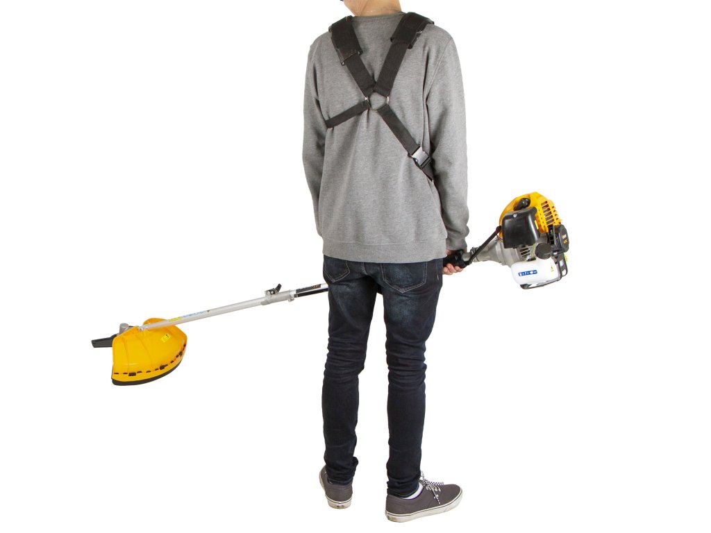 Pro usnadnění práce zajisté oceníte ramenní popruh, který pomůže rozložit váhu křovinořezu na celé tělo. Samozřejmostí je podložka na stehno.