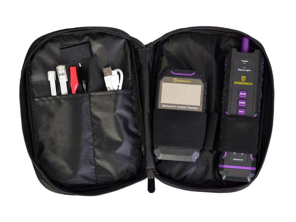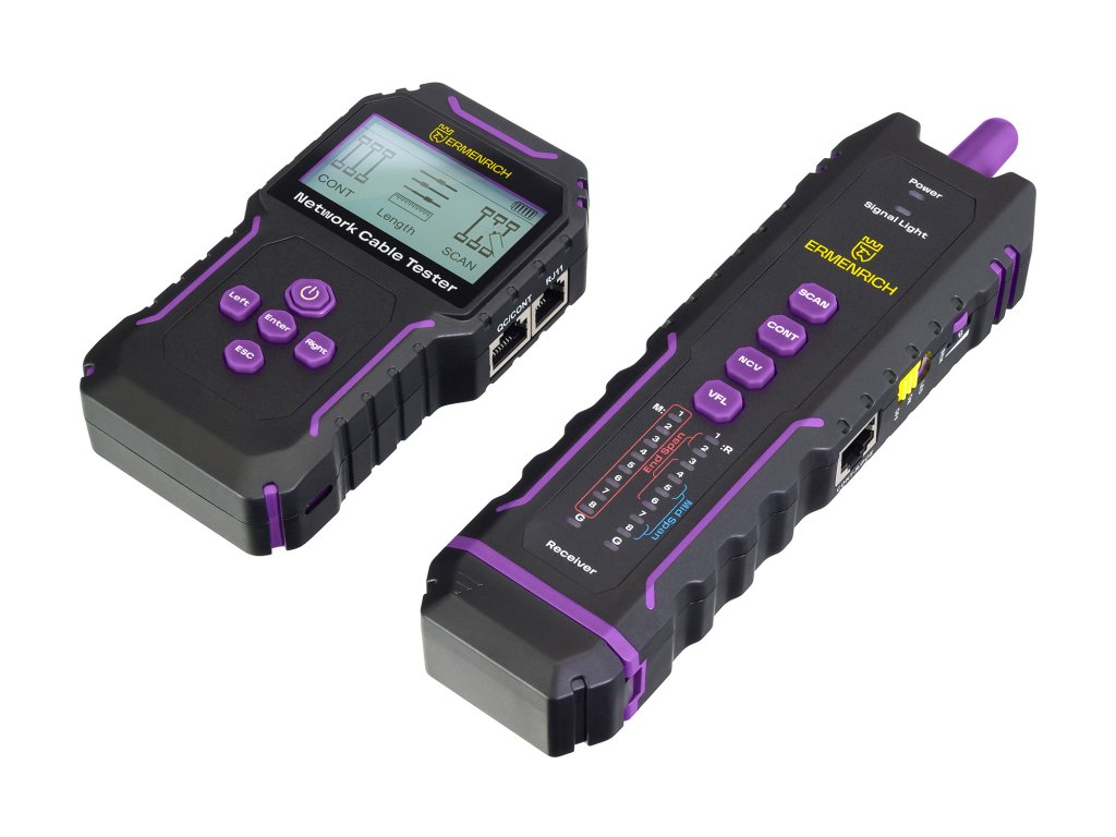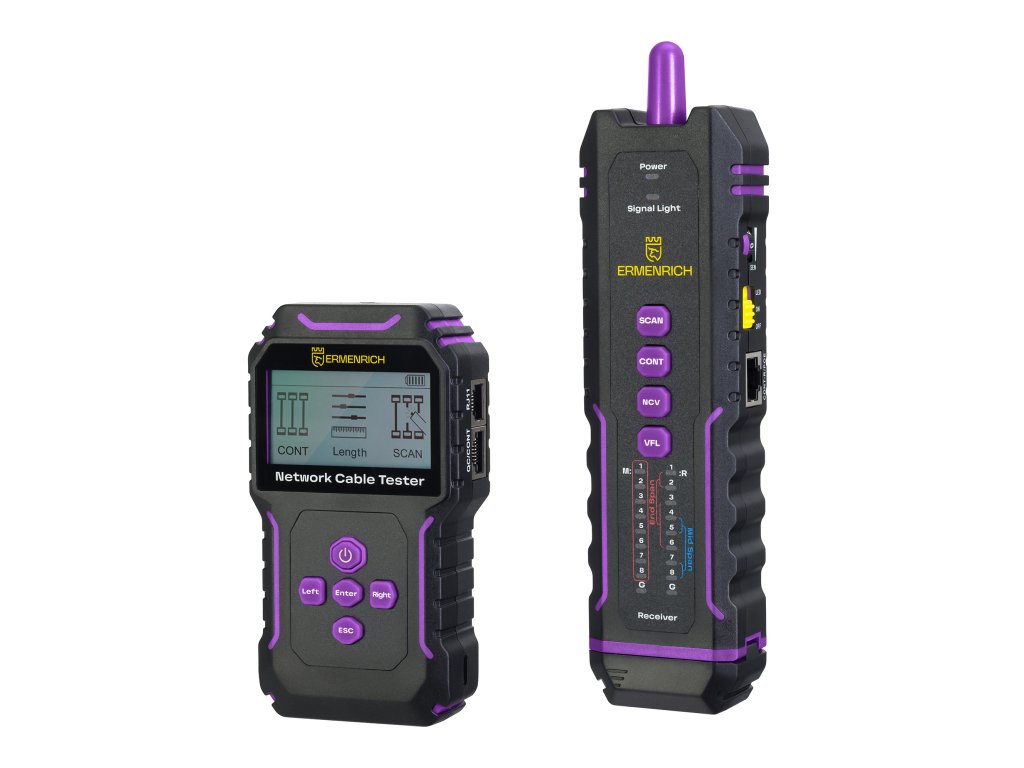 Multifunkční tester kabelů Ermenrich NetGeeks NP45 je speciální přístroj pro testování velkého množství parametrů telefonních, počítačových a kroucených dvoulinkových sítí a také pro detekci poruch kabelů a přerušených obvodů, zjišťování přítomnosti napětí atd. Tester nabízí funkce, které umožňují profesionálům efektivně instalovat, diagnostikovat a opravovat sítě v kancelářích, domácnostech i v průmyslovém prostředí.