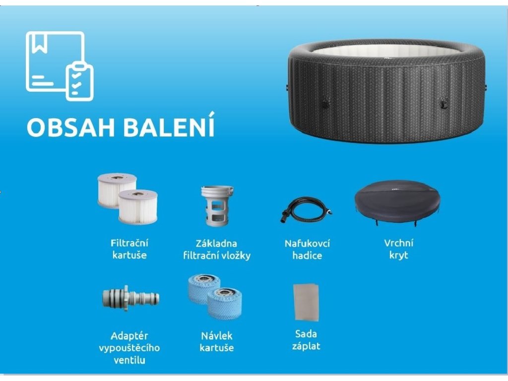 - 1x nafukovací hadice + uzávěr s tlakoměrem