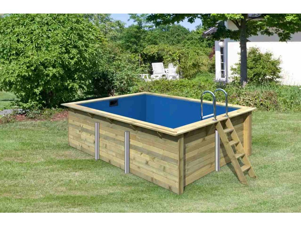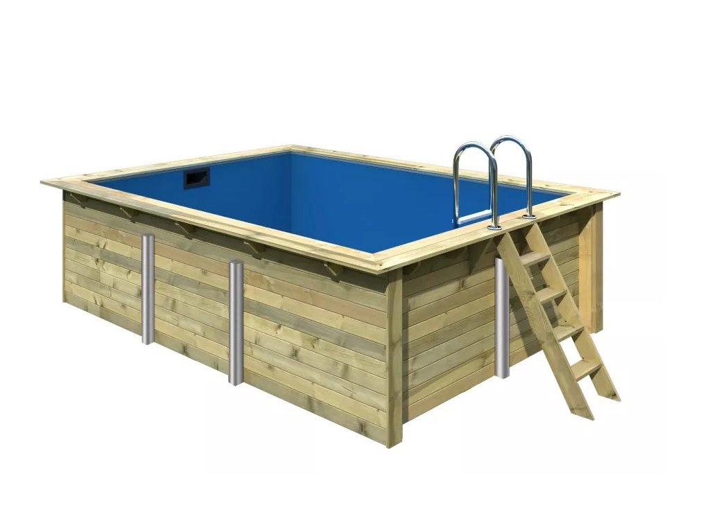 Konstrukce bazénu je vyrobena z dřevěných profilů (systém dvojité pero / drážka) síly 44 mm. Vnitřní prostor je vyplněn pevnou modrou PVC fólií o síle 0,6 mm.