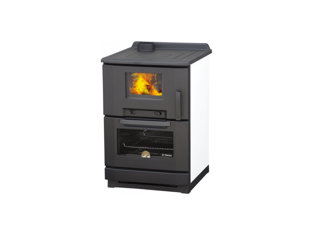 Sporák na dřevo PLAMEN je velkou novinkou na evropském trhu a díky svému designu, spolehlivostí a velkému (až 30 cm) prosklenému topeništi, trouby na pečení, jednoduché obsluze a hlavně ceně má již nesmírné množství svých spokojených uživatelů. Topeniště a vrchní deska (plotna) sporáku je vyrobena z velice kvalitní vysokotlaké litiny. Tato plotna je navíc potažena speciálním teflonovým nátěrem, speciálně navrženým k jednoduchému udržování čistého povrchu.