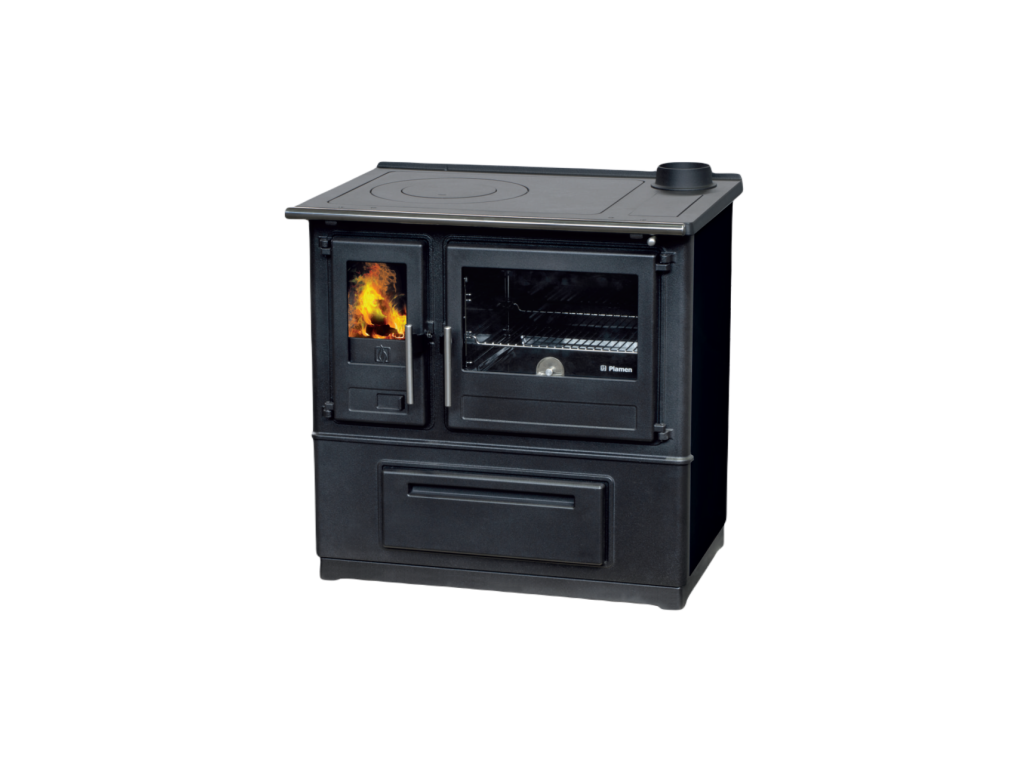 Sporák na dřevo PLAMEN je velkou novinkou na evropském trhu a díky svému designu, spolehlivostí a velkému (až 30 cm) prosklenému topeništi, trouby na pečení, jednoduché obsluze a hlavně ceně má již nesmírné množství svých spokojených uživatelů. Topeniště a vrchní deska (plotna) sporáku je vyrobena z velice kvalitní vysokotlaké litiny. Tato plotna je navíc potažena speciálním teflonovým nátěrem, speciálně navrženým k jednoduchému udržování čistého povrchu.