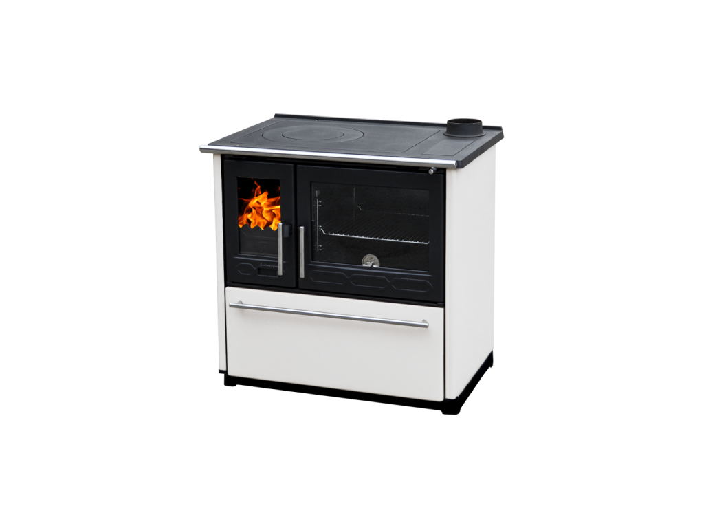 PLAMEN sporák na pevná paliva 850 GLAS pravý - bílý