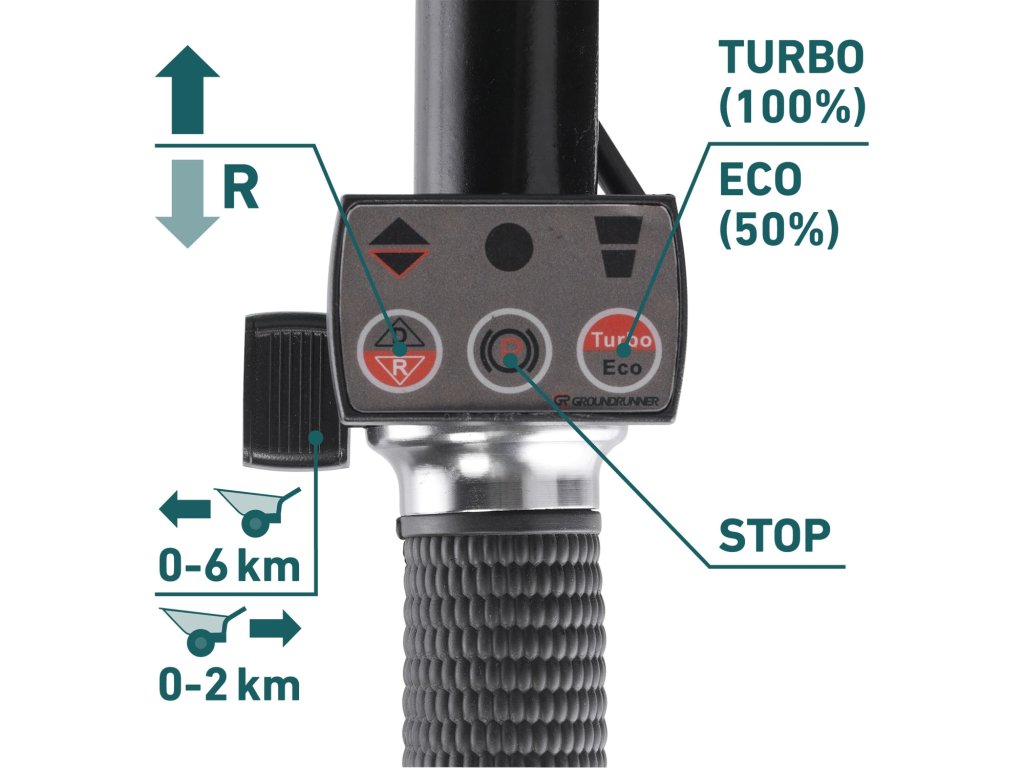 Pro běžný provoz se používá normální rychlost, Turbo lze použít při jízdě do kopce, v obtížném terénu nebo při přepravě těžšího nákladu.