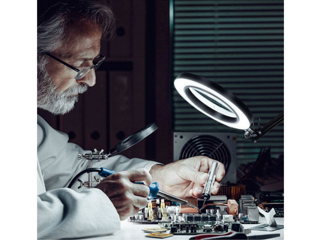 POŠK. OBAL lampa stolní s lupou, USB napájení, 1300lm, 3 barvy světla, 5x zvětšení