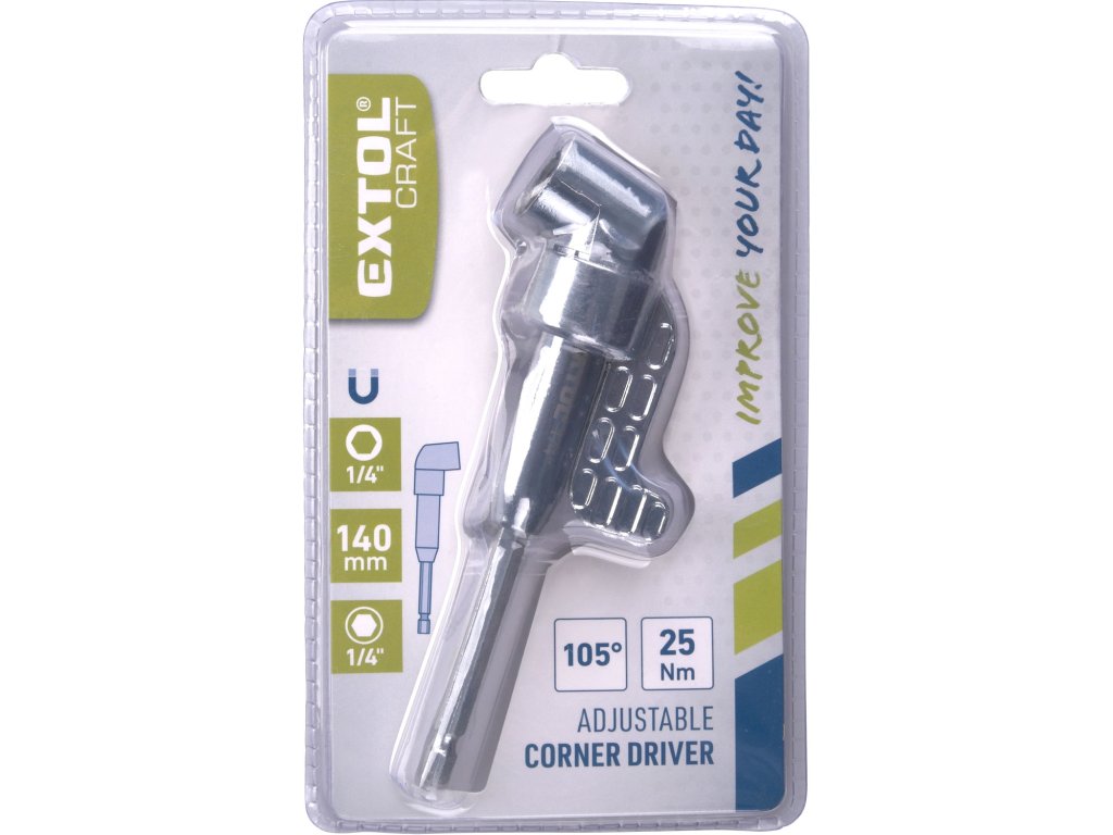POŠK. OBAL úhlový nástavec/držák hrotů do vrtačky, 1/4"x140mm (105°) s magnetem