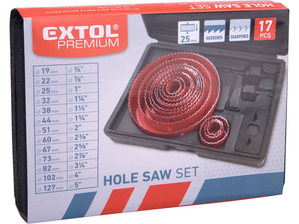 POŠK. OBAL vrtáky vykružovací korunkové, 13 průměrů O 19-127mm