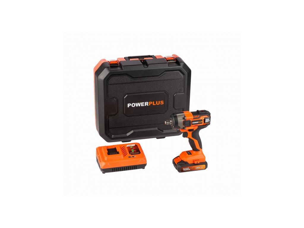 Výhodný SET POWDP20160 Aku rázového utahováku, baterie 20V 2.000mAh, nabíječky a to vše v kufru.
