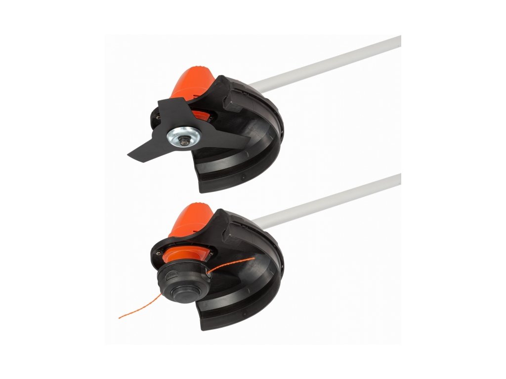 Na křoviny máte k dispozici řezný kotouč 255mm a na trávu strunovou hlavu s 5m dlouhou strunou o průměru 2mm a záběrem 320mm (obojí je součástí balení).