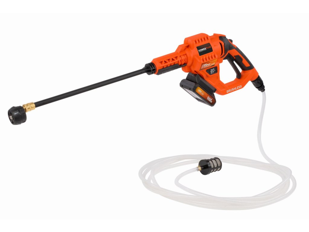 Tlakový čistič 20 V je vybaven 6 m dlouhou sací hadicí, která může čerpat vodu ze vzdálených zdrojů, jako je jezero, studna nebo rybník, proto se tento stroj Dual Power dokonale hodí k čištění silničních nebo horských kol po blátivé jízdě.