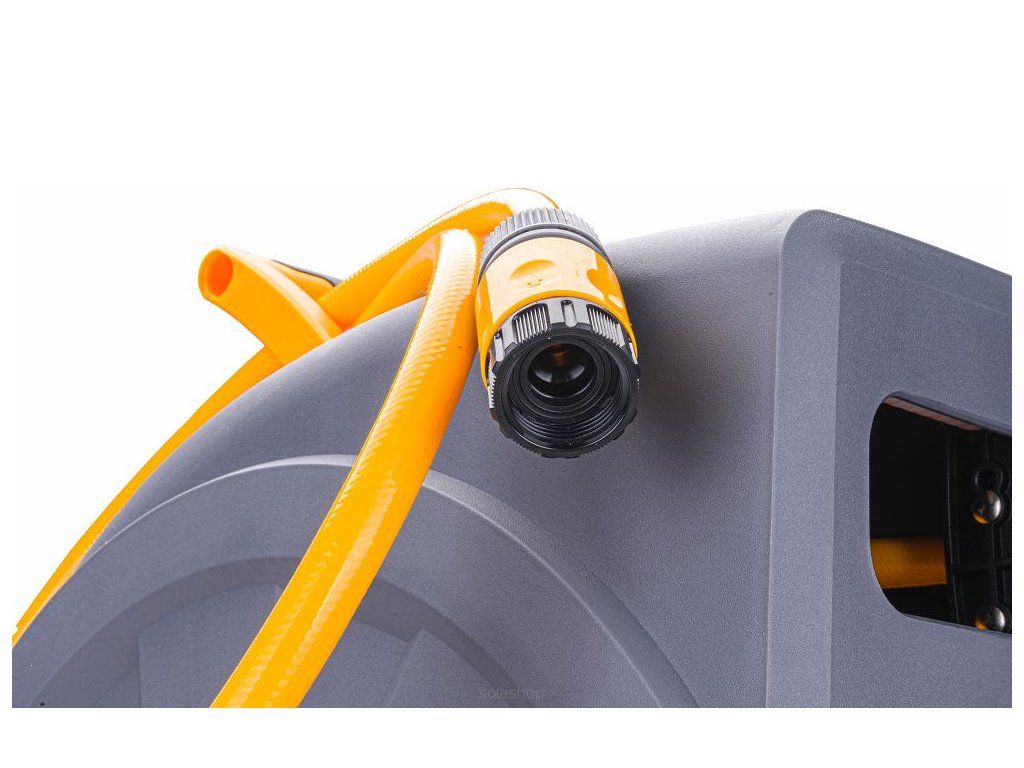 - Naviják má pevné vodicí válečky a funkci bezpečného návratu, díky které si můžeme být jisti, že se hadice na konci práce zatáhne zpět