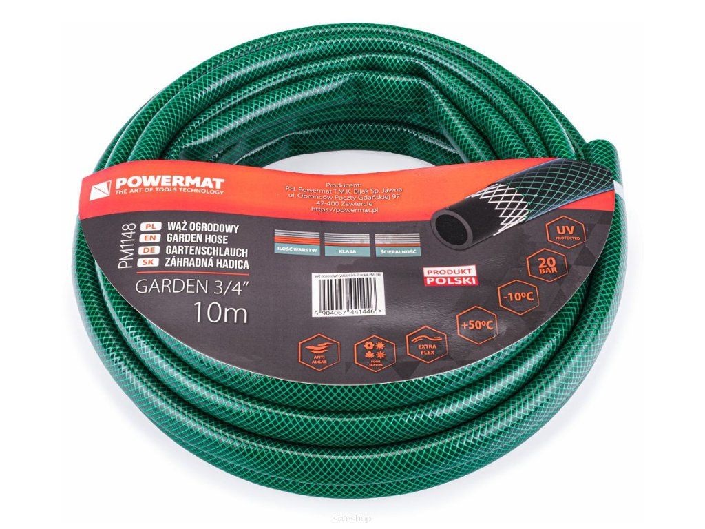 Vysoce kvalitní zahradní hadice POWERMAT se vyznačuje velmi dobrým materiálem odolným vůči slunečnímu záření a nízkým a vysokým teplotám.