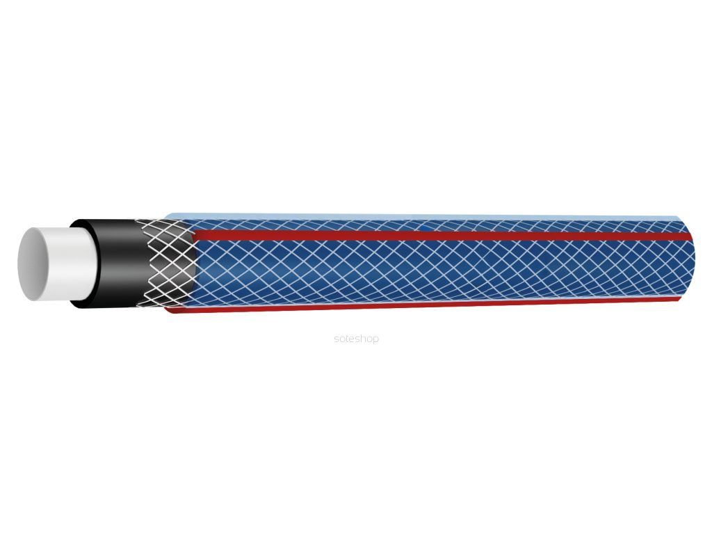 - 4-vrstvá (koextrudovaná bílá vnitřní vrstva trvale spojená s černou duší, křížový oplet z kvalitní polyesterové příze, průhledný plášť)