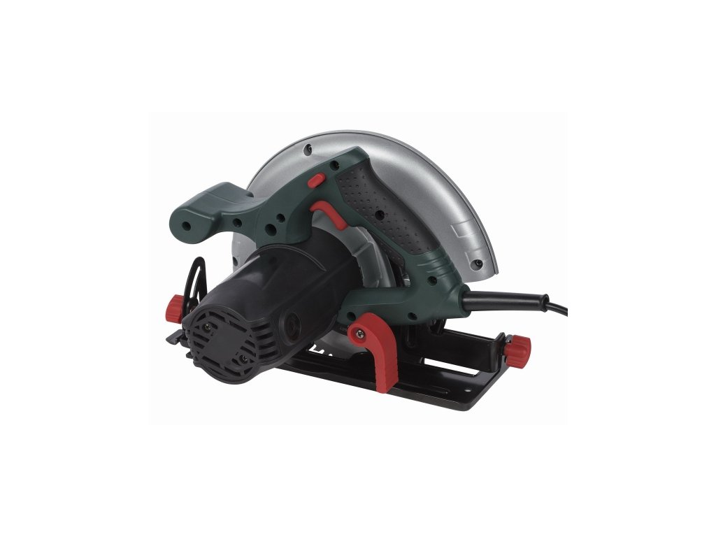 Tato okružní pila má měkčenou rukojeť a je opatřena aretačním tlačítkem pro větší bezpečnost.